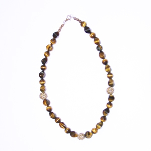 Schöne handgearbeitete Tigeraugenkette mit 3 Silberkugeln